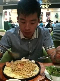 this is really yummy. Sizzling hot plate with seafood sphagetti.